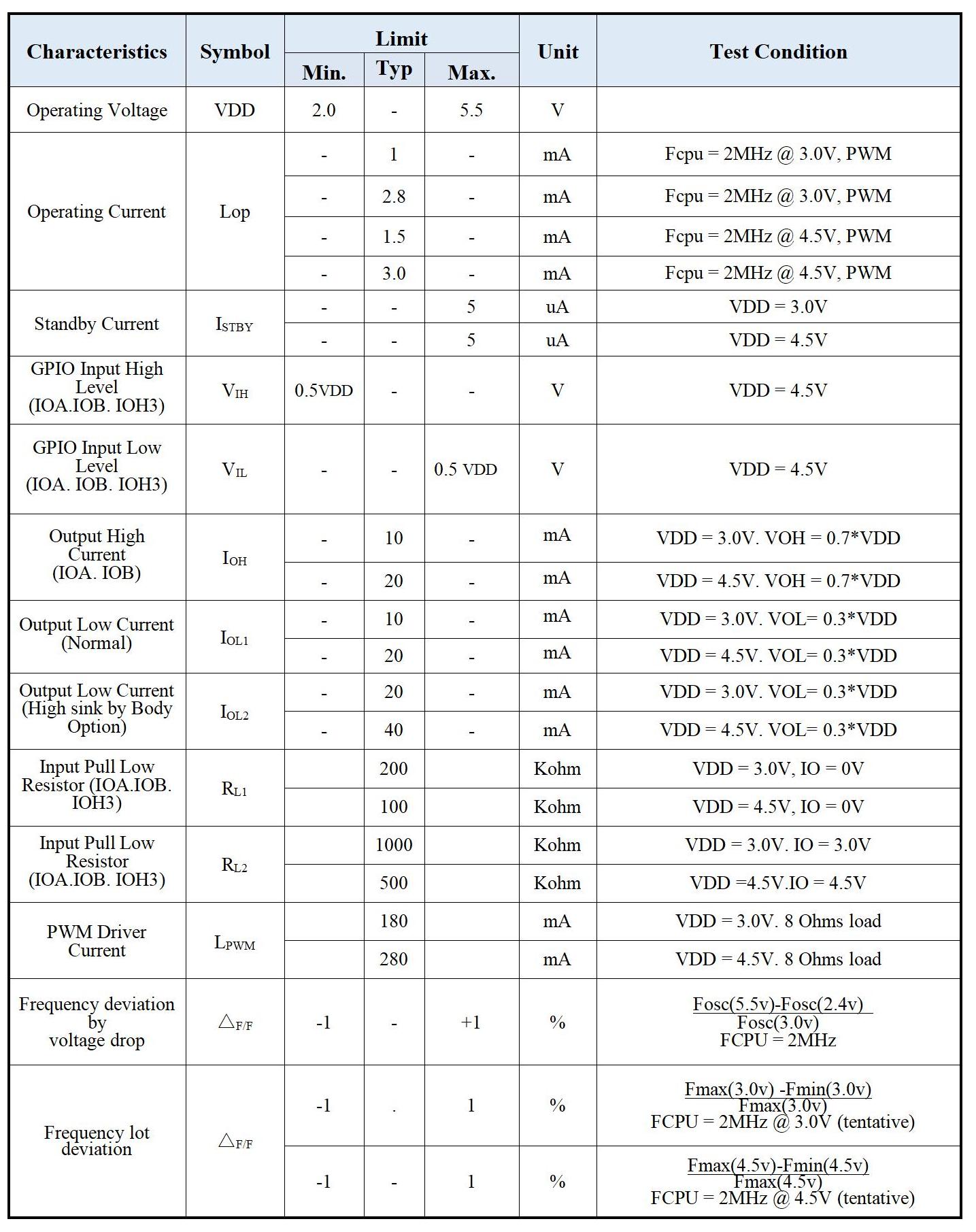 1.产品工作的电压范围:2-5.5V