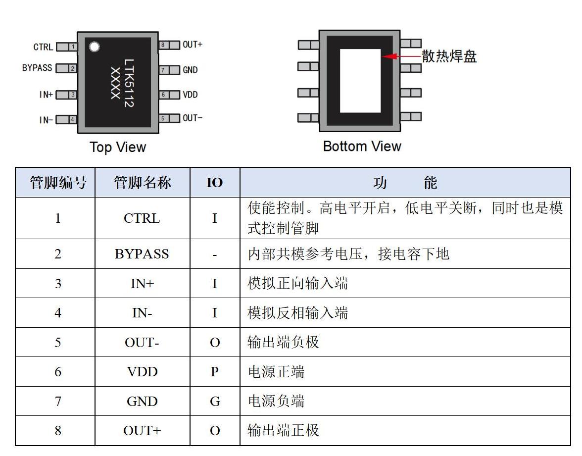 LTK5112是一款4Ω-28W 、差分结构,F类音频功率放大器,LTK5112工作电压6-14.5V,同时采用差分输入结构,对噪声的干扰有很好的抑制作用,LTK5112的F类模式控制和关断控制集成在一个脚位上,通过一个管脚控制芯片的开启、关闭、AB类、D类的自由切换,可以极大程度的节省IO口,并且在AB类可以完全消除EMI的干扰,在D类放大器模式下可以提供高于90%的效率,新型的无滤波器结构可以省去传统D类放大器的输出低通滤波器, LTK5112采用ESOP-8封装。